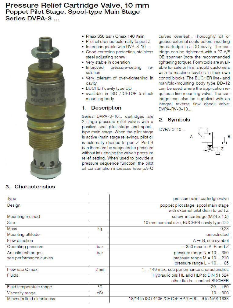 DVPA-3-10-HN-3,DVPA-3-10-SN-3,DVPA-3-10-ZL-2,DVPA-3-10-HL-2,Bucher壓力控制閥