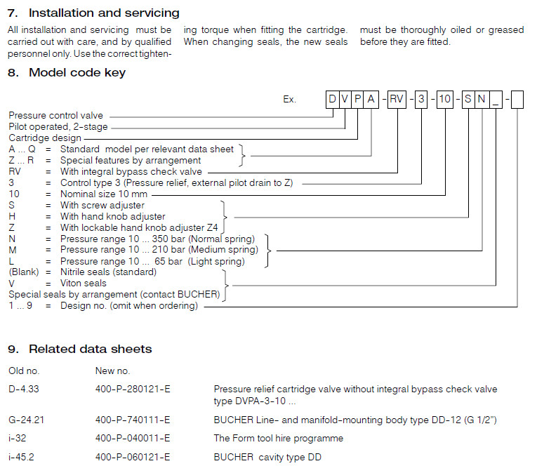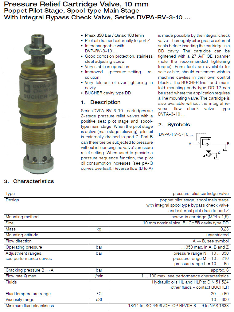 DVPA-RV-3-10-SN-3,DVPA-RV-3-10-SM-3,DVPA-RV-3-10-SL-3,Bucher壓力控制閥 |