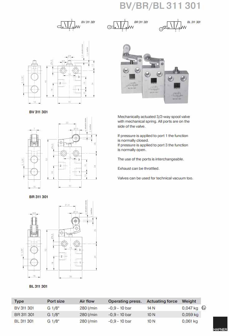 BV311301,BR311301,BL311301,Hafner滑閥