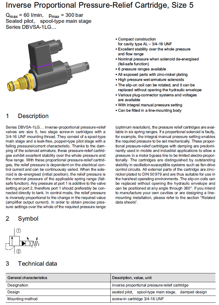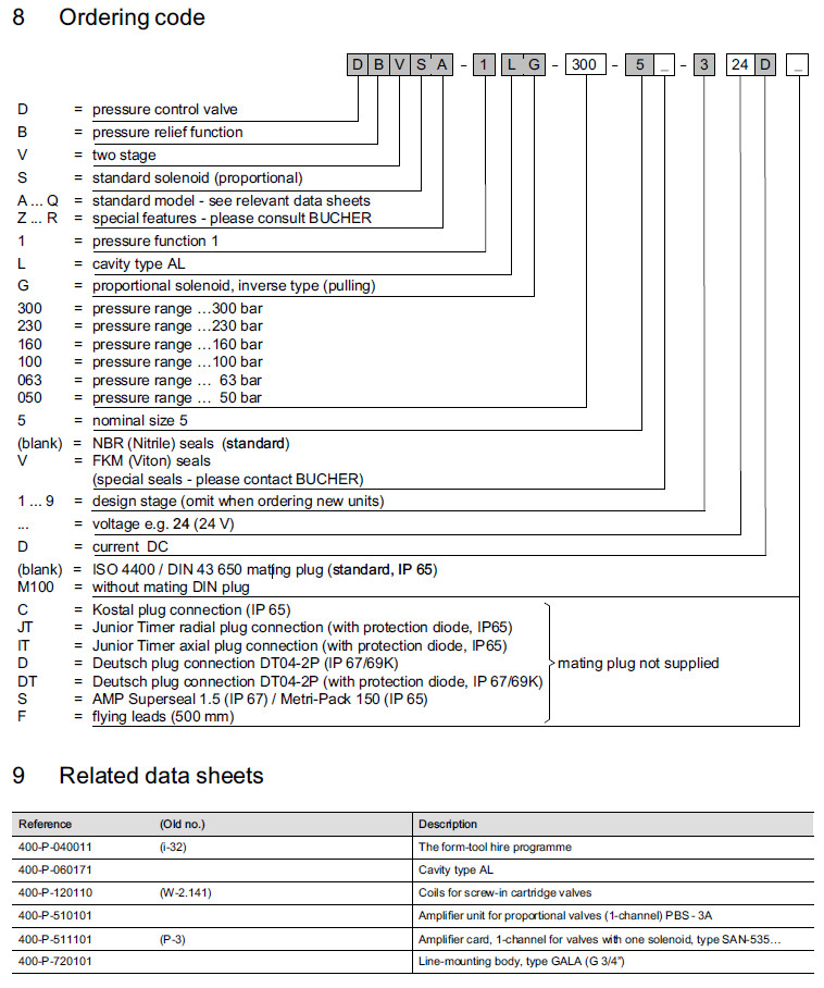 DBVSA-1LG-100-5-3,DBVSA-1LG-300-5-3,DBVSA-1LG-230-5-3,Bucher壓力控制閥