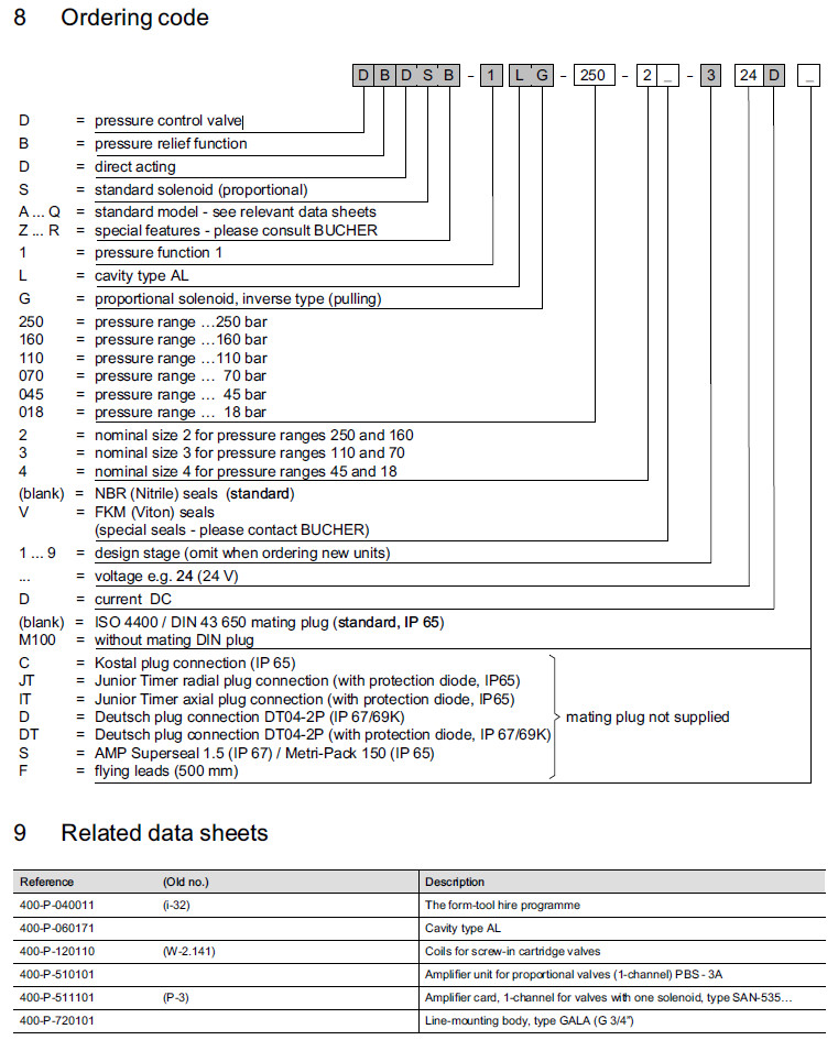 DBDSB-1LG-210-2-3,DBDSB-1LG-070-3-3,DBDSB-1LG-160-2-3,Bucher壓力控制閥
