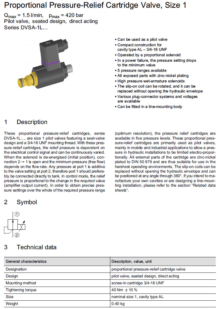 DVSA-1L-040-1-1,DVSA-1L-100-1-1,DVSA-1L-160-1-1,DVSA-1L-250-1-1,Bucher比例溢流閥 |
