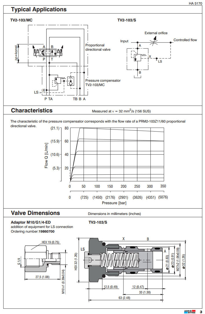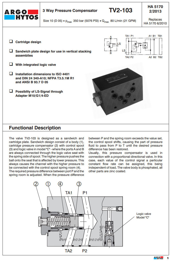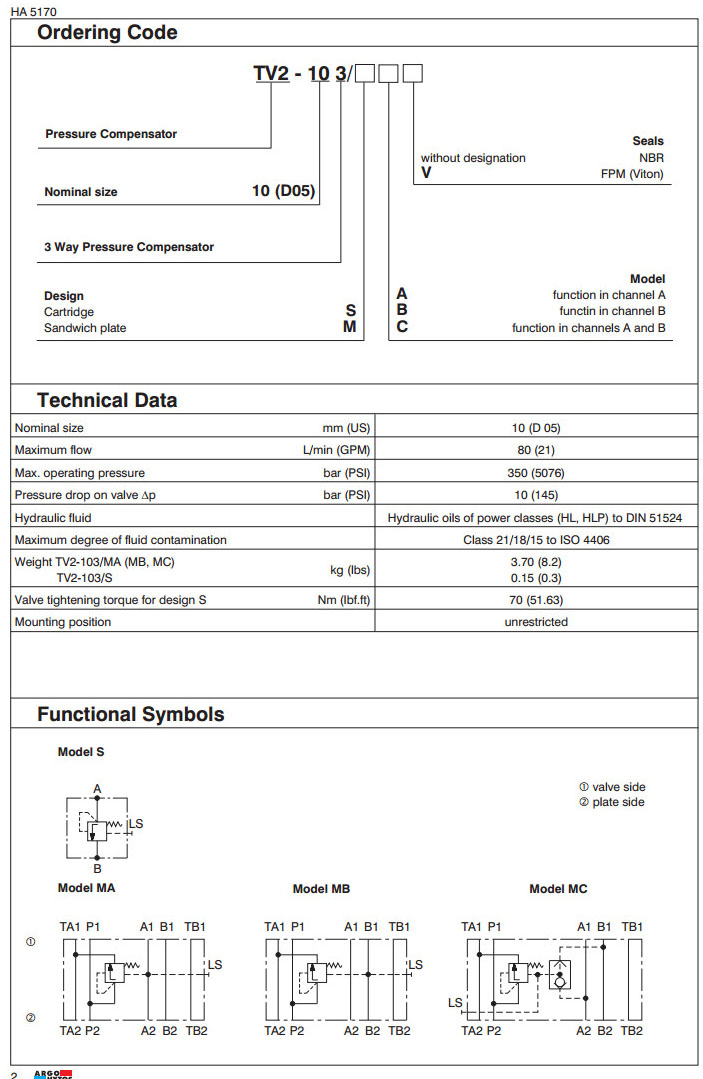 TV2-103/S,TV2-103/MA,TV2-103/MB,TV2-103/MC,ARGO 3路壓力補償器