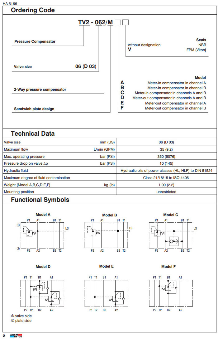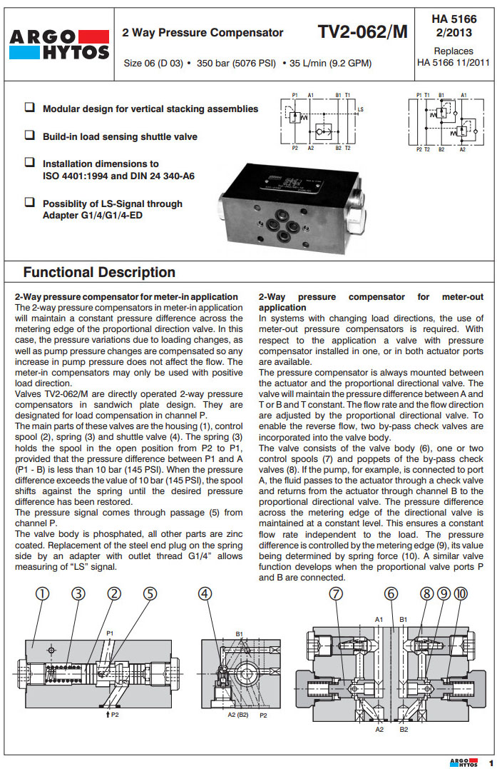 TV2-062/MA,TV2-062/MB,TV2-062/MC,TV2-062/MD,TV2-062/ME,TV2-062/MF,ARGO 2路壓力補(bǔ)償器