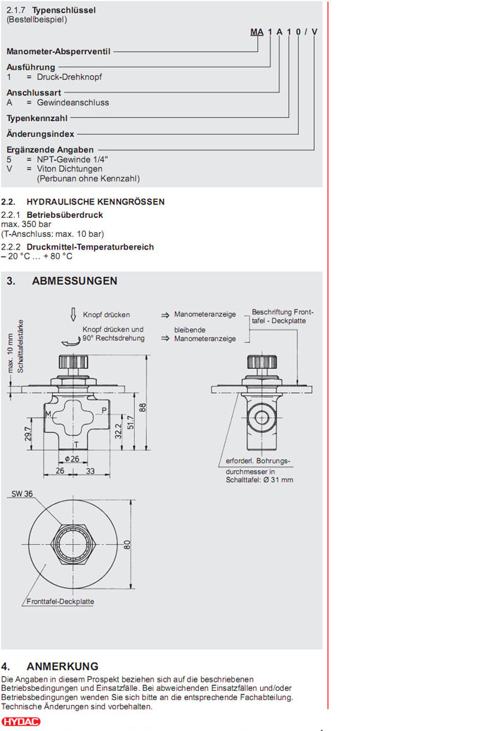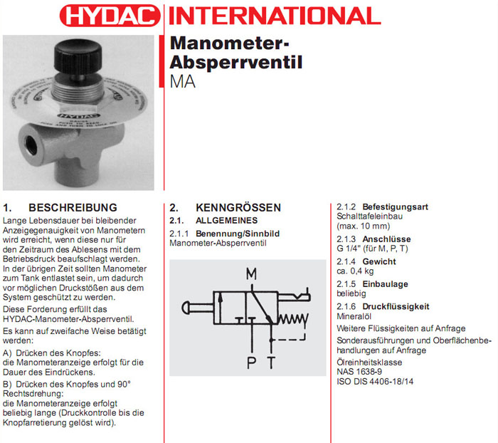 MA1A10/V,MA1A10/5,HYDAC關(guān)閉閥