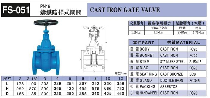 FS-051,鑄鐵暗桿式閘閥