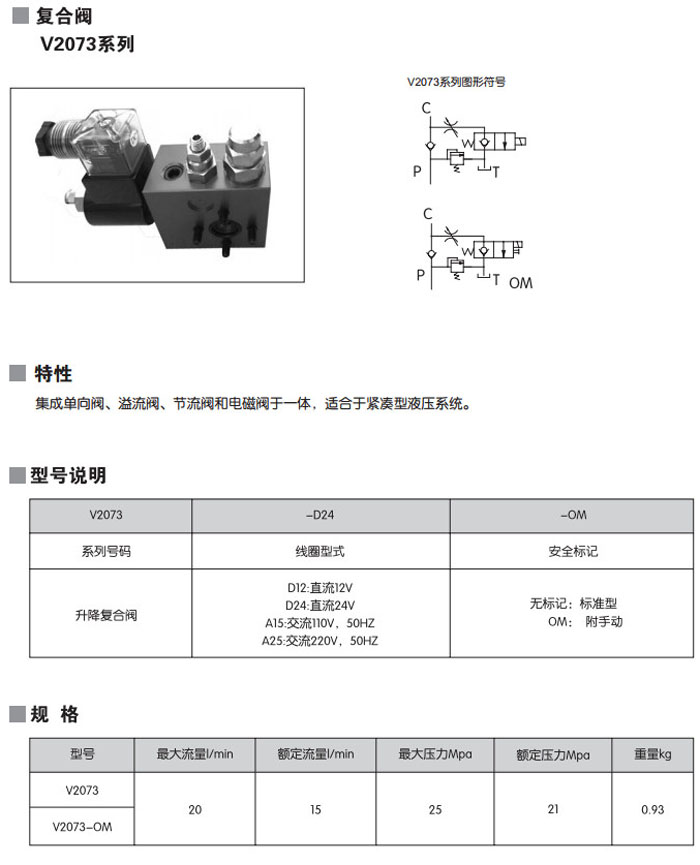 V2073-D12,V2073-D24,V2073-A15,V2073-A25,V2073-D12-OM,V2073-D24-OM,V2073-A15-OM,V2073-A25-OM,復合閥