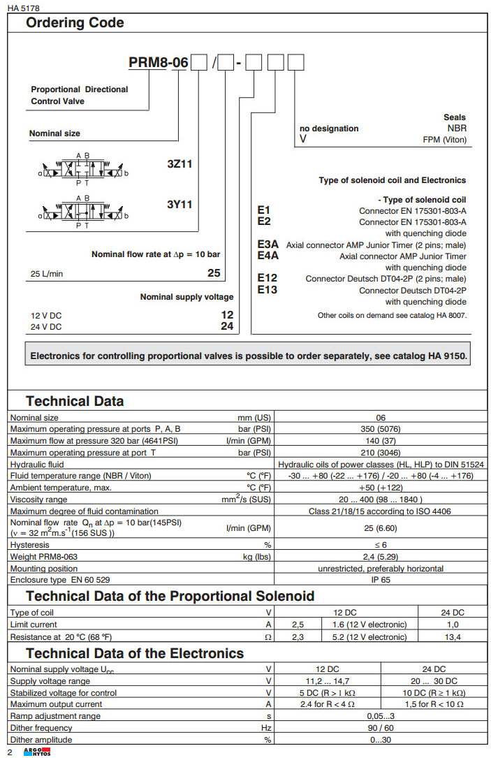 PRM8-063Z11/25-12,PRM8-063Y11/25-24,PRM8-063Z11/25-24,PRM8-063Y11/25-12,ARGO比例方向控制閥