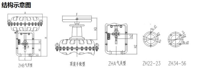 | ZH | 作用形式 | -尺寸規(guī)格 | -彈簧范圍(KPa) | -手輪機(jī)構(gòu) |