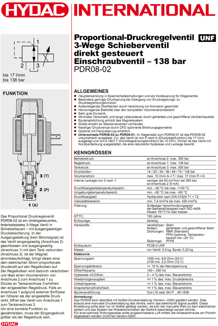 PDR08-02-C-N-20-12PG-2.2,PDR08-02T-C-N-55-24PU-8.8,PDR08-02-C-N-20-24PG-8.8,HYDAC比例減壓閥