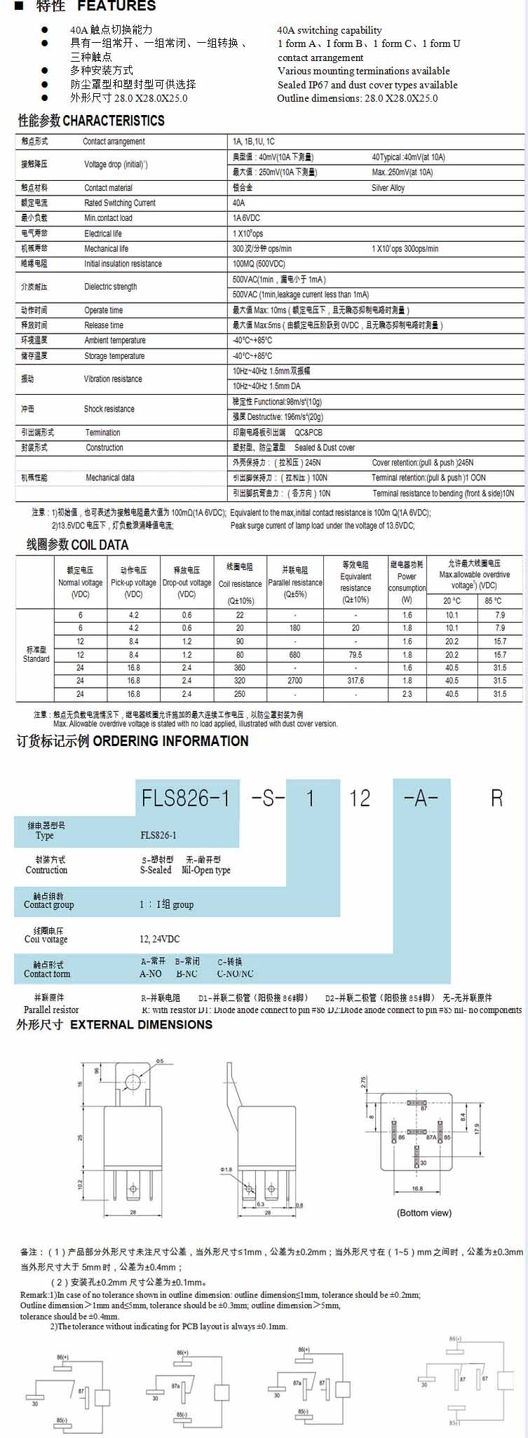FLS826-1,汽車繼電器