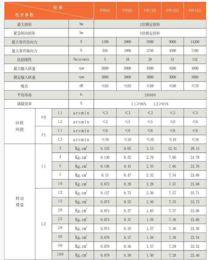 PR060-L1,PR090-L1,PR120-L1,PR150-L1,PR180-L1,行星減速機