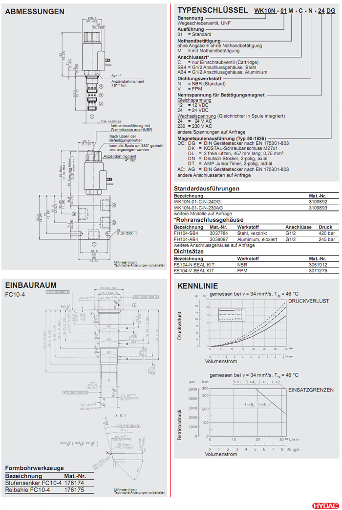 WK10N-01-C-N-24DG,WK10N-01-C-N-230AG,HYDAC電磁4/2方向滑閥