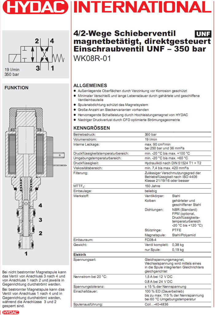 WK08R-01-C-N-12DG,WK08R-01-C-N-24DG,WK08R-01-C-N-230AG,HYDAC電磁4/2方向滑閥 |